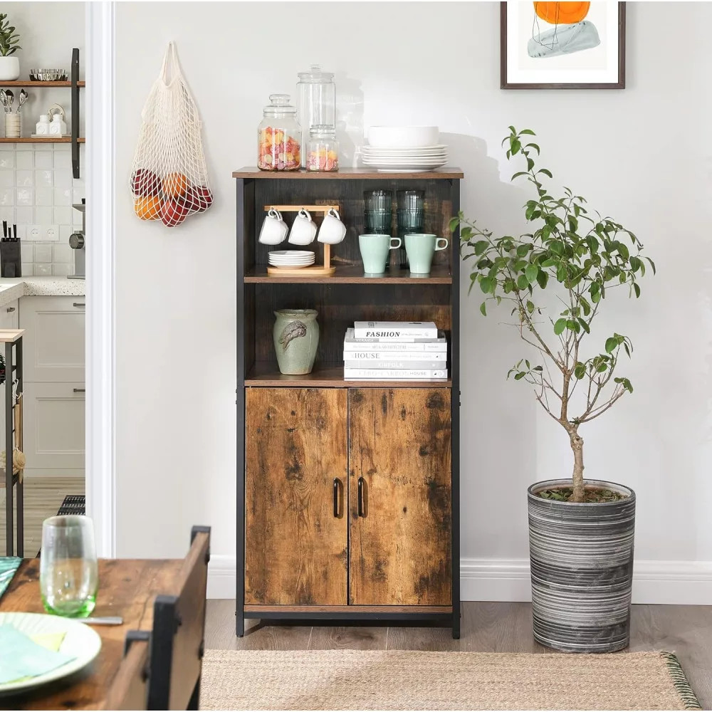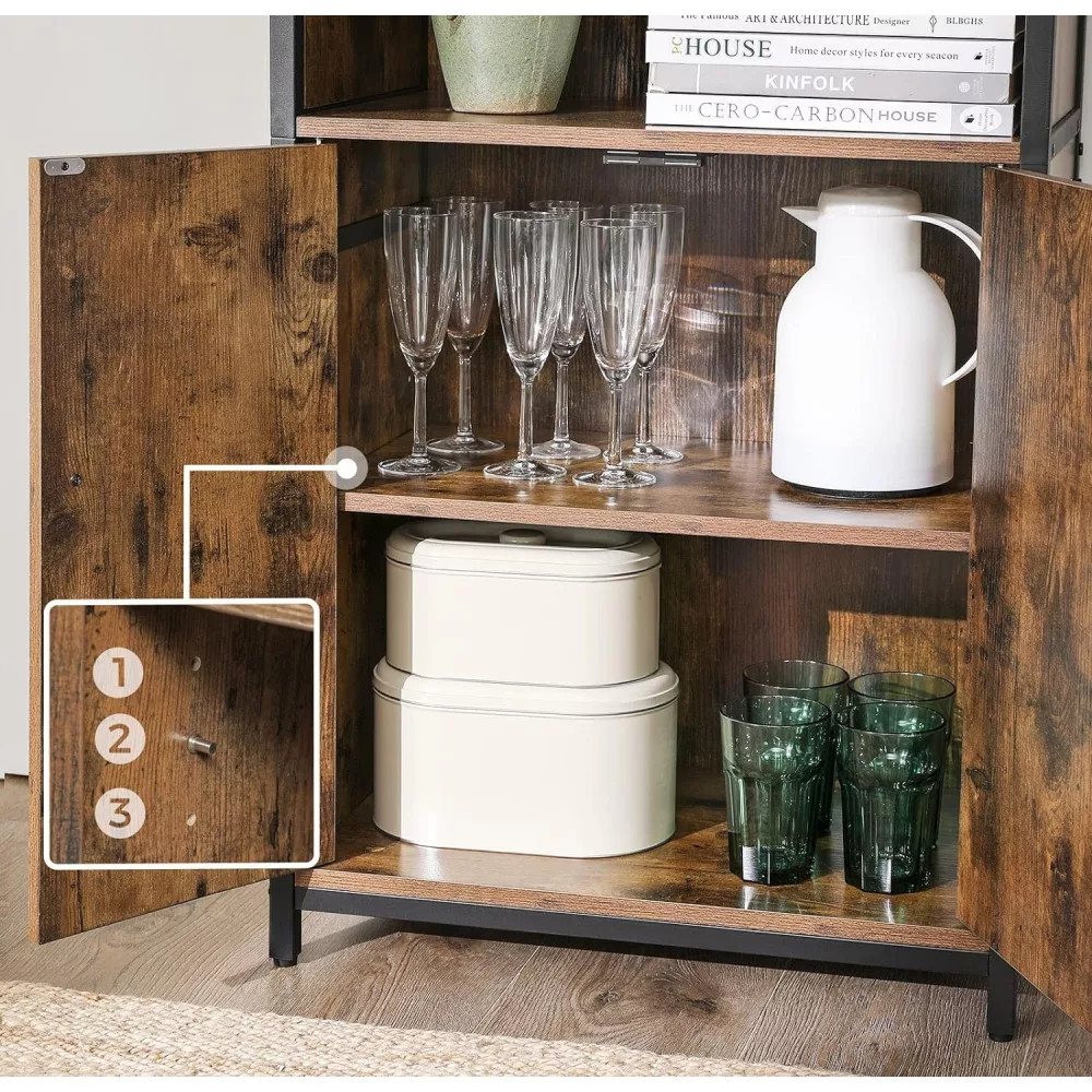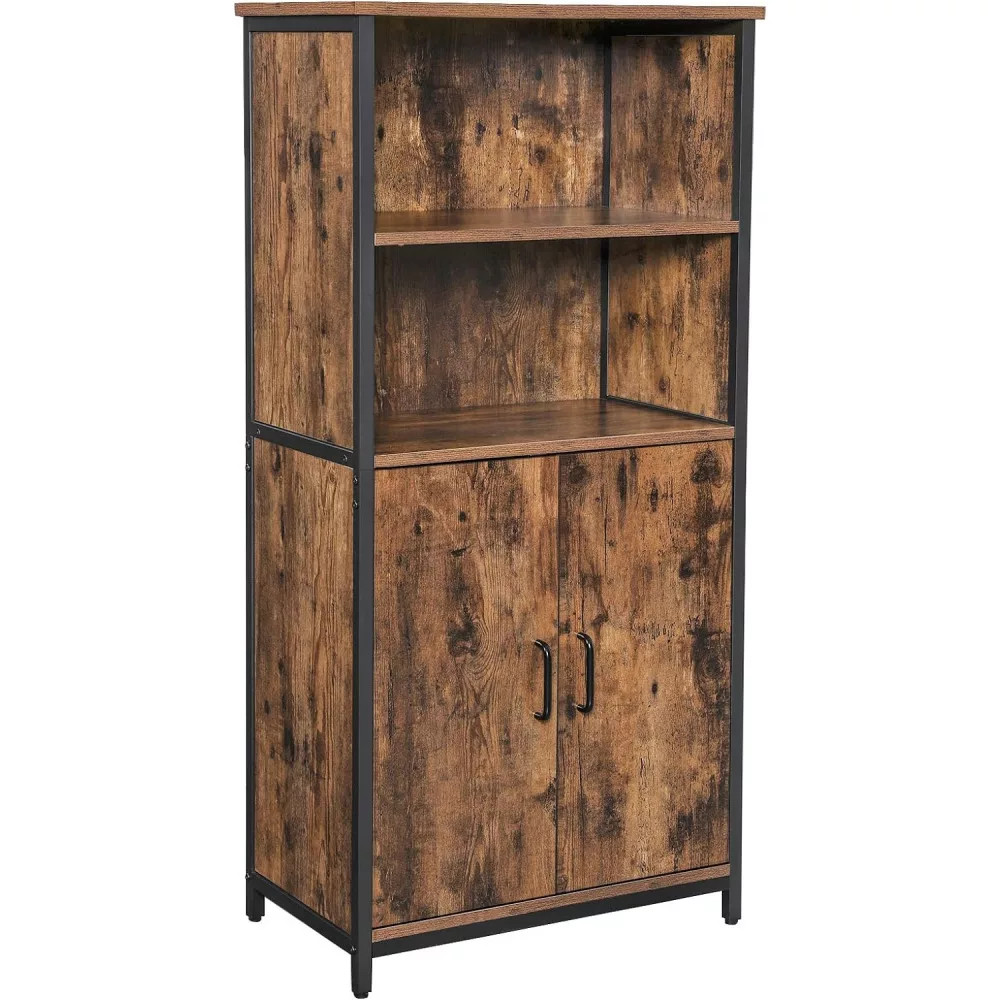 Tárolószekrény két ajtóval és nyitott polcokkal, rusztikus barna 60x35x124cm