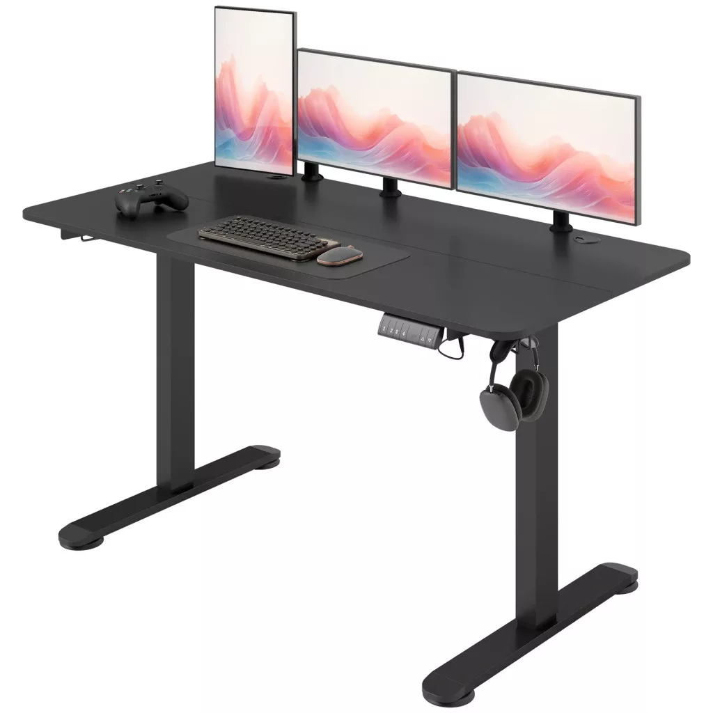 Tágas és rendezett: A nagyméretű, 140Sz x 70M cm-es munkafelülettel ez az állítható magasságú asztal két kábelrendező lyukkal is rendelkezik a tiszta kábelkezeléshez, valamint két akasztóval a kényelmes fejhallgató-tároláshoz, maximalizálva a munkaterületet.