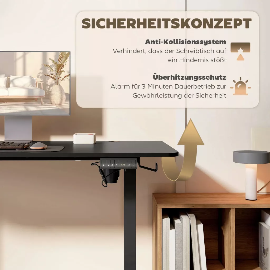 Egyszerű, biztonságos vezérlés: Hatgombos vezérlővel és négy előre beállított magassággal ideális különféle felhasználók és feladatok számára. Az akadályok visszarúgása és a túlmelegedés elleni védelem biztonságos napi használatot biztosít.