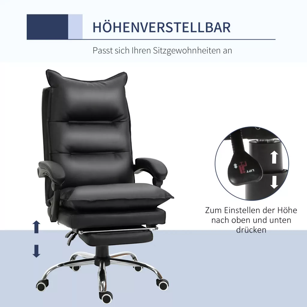 Ez a Vinsetto irodai szék kivételes kényelmet kínál. A műbőr kárpitozás és a bőséges párnázás csábít a pihenésre. Az ergonomikusan formázott háttámla és az integrált karfák kiváló kényelmet biztosítanak. A forgó kerekeknek köszönhetően a szék könnyen mozgatható. Ez a Vinsetto számítógépes szék maximális kényelmet biztosít hosszú munkamenetek során.