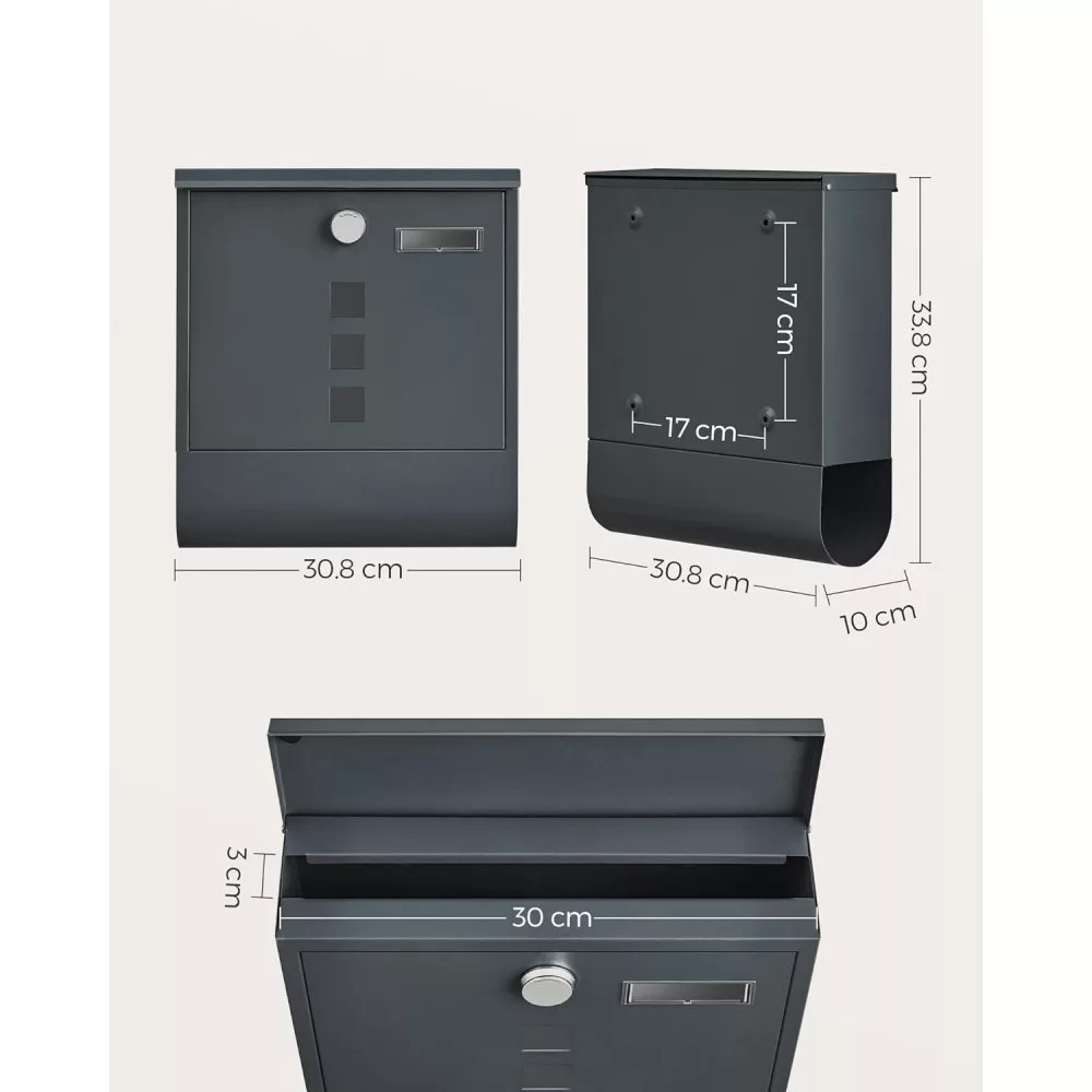 Zárható postaláda újságtartóval, névtáblával falra, kerítésre szerelhető, antricit szürke