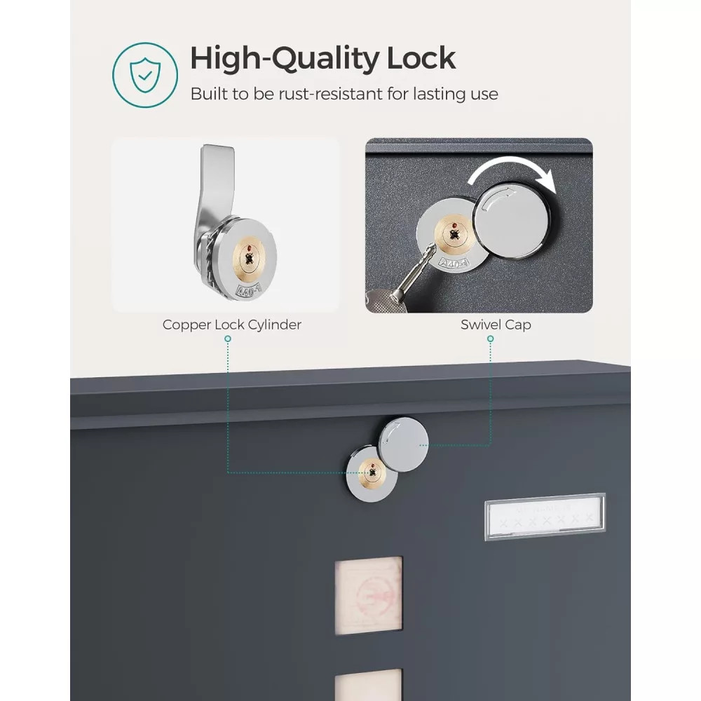 Minőségi Védelem: Kiváló minőségű acélból és rézmagos zárral, védősapkával, amely nem könnyen rozsdásodik, ez a postaláda biztosítja a leveleid minőségi védelmét, miközben kiemelkedő stílusával elegáns módon fogadhatod a postát.