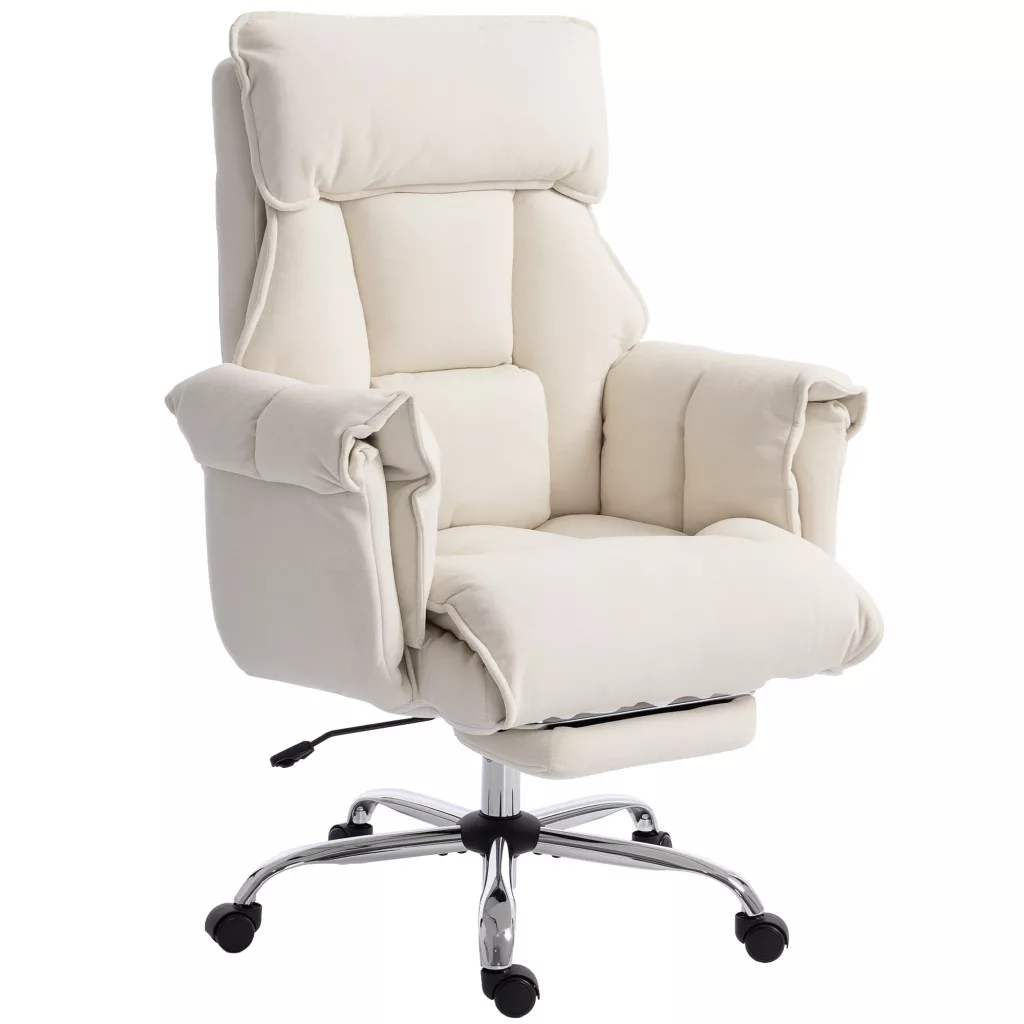 Kényelem hosszú órákon át: Ez a hópelyhes flanellel kárpitozott irodai szék puha, kétrétegű párnázattal, fej- és deréktámaszt, valamint tágas ülést kínál a nyugodt munkához és a szabadidőhöz.