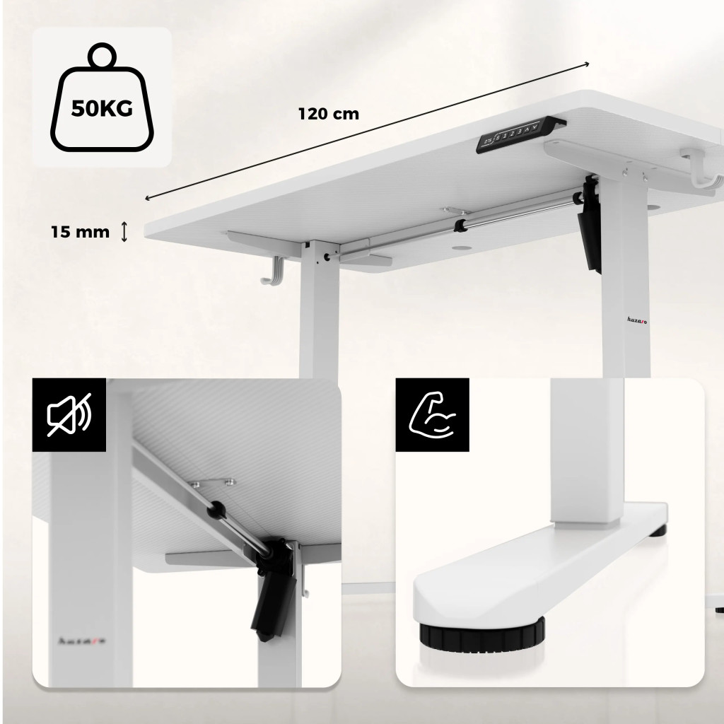 • Igazítsa asztala magasságát tökéletesen a testmagasságához és munkastílusához. Dolgozzon ergonomikusan, és kerülje el a hátfájást – élvezze a teljes kényelmet még hosszú munkamenetek során is.