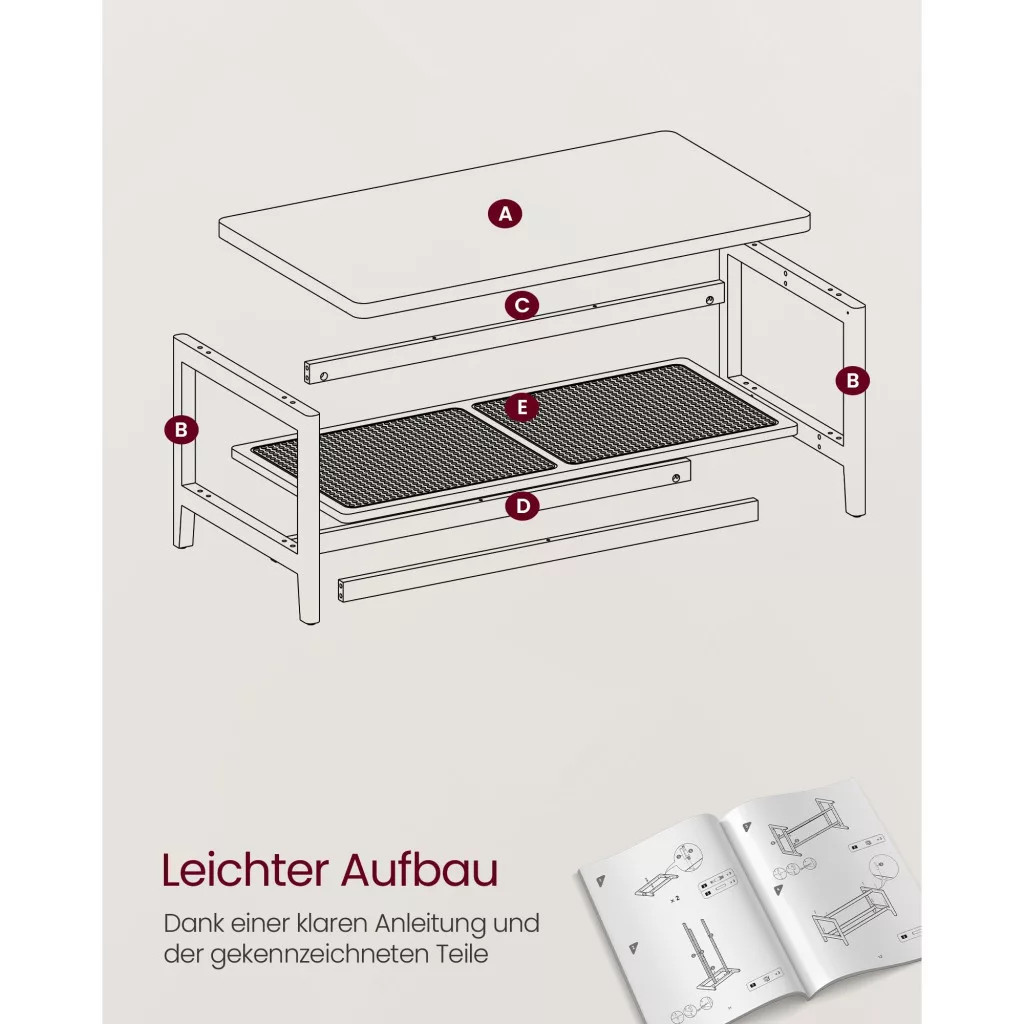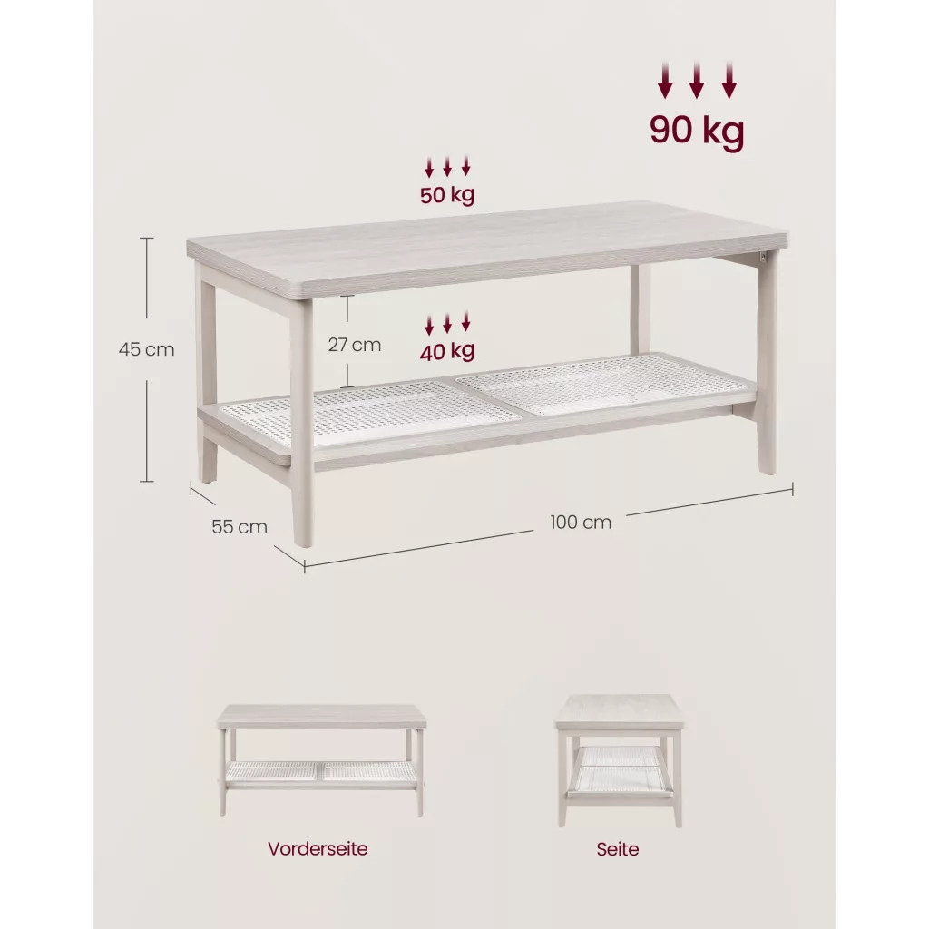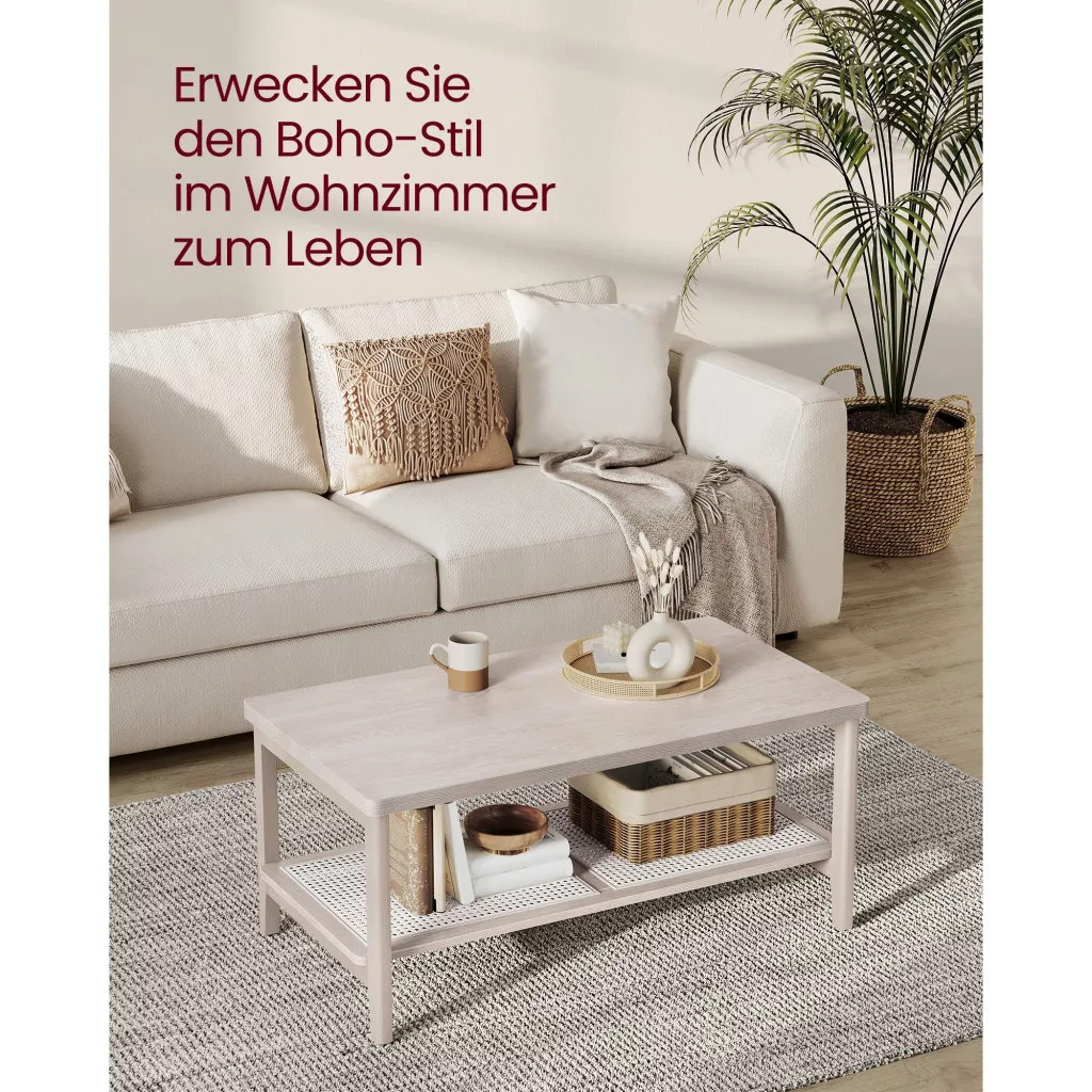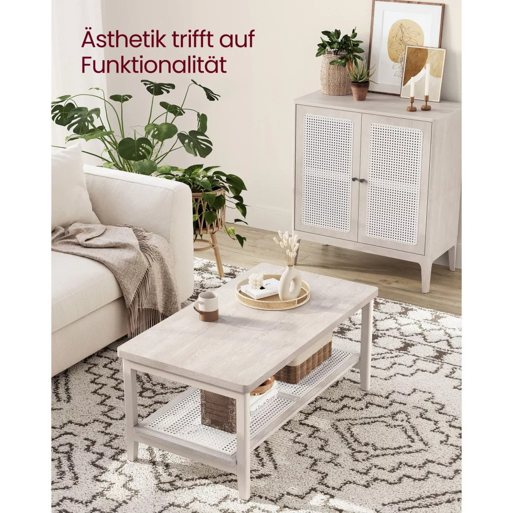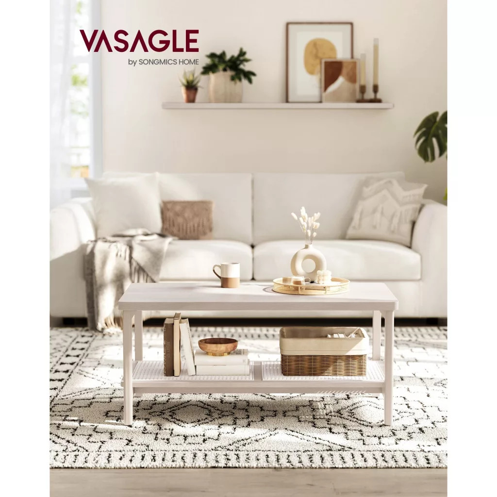 VASAGLE Dohányzóasztal, műrattan tárolópolc, lekerekített sarkok, greige 100x55x45cm