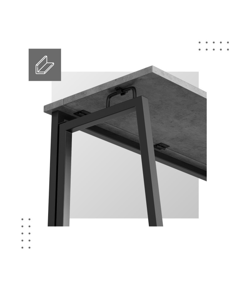 Csak hajtsa össze a lábakat és engedje le az asztallapot, hogy helyet takarítson meg otthon vagy az irodában. Egy egyszerű összecsukható rendszer azt jelenti, hogy a munka befejezése után néhány pillanat múlva nyoma sem lesz otthoni irodájának, és teret nyer szenvedélyeinek fejlesztéséhez.