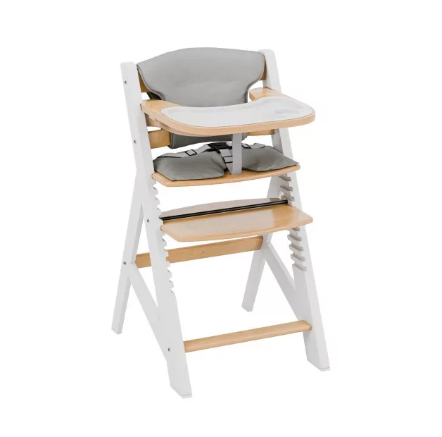 1. Etetőszék 6 hónapos kortól: a tálca, a biztonsági öv, a védőrács és a párnák lehetővé teszik, hogy a kicsi biztonságosan és kényelmesen fedezze fel az új ízeket.