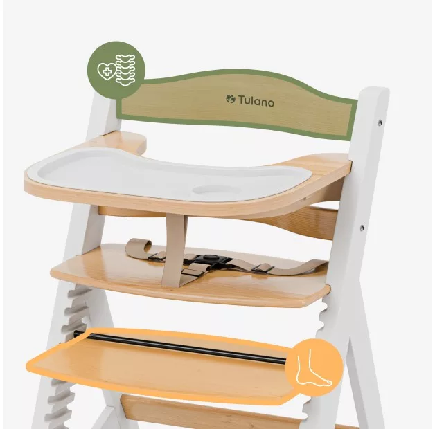 A kiváló minőségű fából készült etetőszék a környezetünk iránti törődésünk bizonyítéka. Gondosan átgondolt kialakítása nemcsak a kényelmet és a biztonságot biztosítja a kicsi etetése közben, hanem a hosszú távú használhatóságot is.